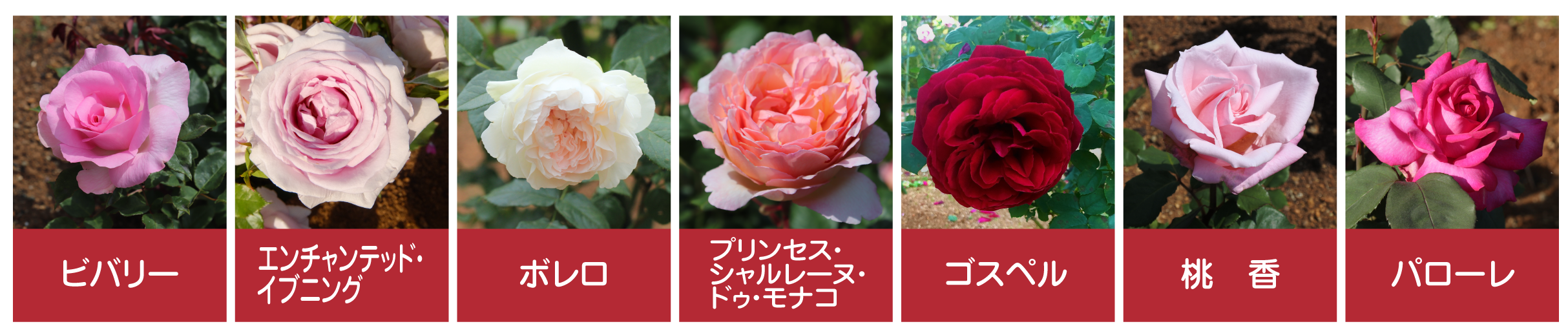 バラ園にあるバラの中から、植物担当スタッフが香りの良い品種を7つ選抜しました!期間中、お好みのバラに投票していただき、結果をイベント終了後、森きらら公式サイトおよび公式SNS、園内看板で発表します。