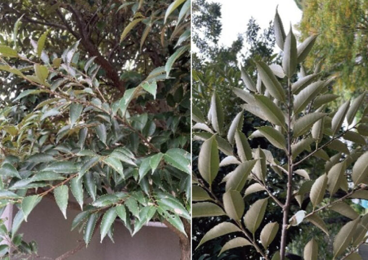 ・長さ5~10cmの倒披針形、皮質で光沢があり、枝葉に密生することが多い