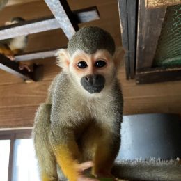 長著像松鼠一樣小小的身體和長長的尾巴,因此被叫做松鼠猴。生活在中南美森林的松鼠猴,運動神經拔群。在森閃閃也能看到它們你追我趕生氣勃勃的姿態。超級喜歡蟲子,運氣好的時候還能看到吃蟲子的樣子哦!