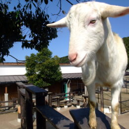 在森閃閃有2種類的山羊:日本山羊、柴山羊。它們非常不喜歡水,所以雨天的時候不想被淋濕就會一直躲在有屋簷的地方。很喜歡高處,所以可以經看見它們在岩石上或者階梯上、椅子上休息的樣子。親密接觸體驗廣場,給山羊們投食體驗(需付費100日圓)也在舉行中哦!山羊們不喜歡被觸摸羊角和臉部,所以撫摸的時候試試輕輕撫摸它的肩部到背部之間的位置。