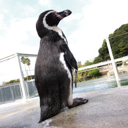 森閃閃裡飼養著大約15只的洪堡企鵝。洪堡企鵝的特徵是嘴根處是粉紅色的,胸前有一條黑色的線,一般生長在溫帶性氣候區。這些可愛的企鵝們會乘坐企鵝館的電梯去到草坪廣場上散步,根據飼養員的指示正在學習各種各樣的動作。