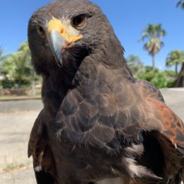 哈里斯鷹棲息在中美洲和南美洲的溫暖地區,屬於鷹科類。猛禽中罕見的成群狩獵,因此有很強的團隊意識。警戒心強且性格幹練的雌性哈里斯鷹「chitose」生活在海閃閃。