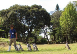 企鵝會從泳池“飛”出來,在草坪廣場上悠哉悠哉的散步。還可以拍攝企鵝們的紀念照哦。